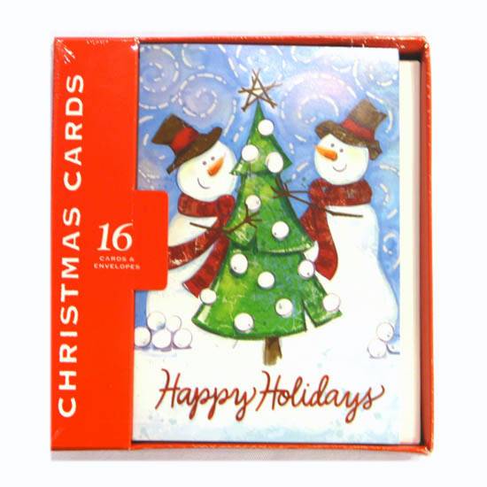 This Christmas card set contains 16 styles of Christmas cards. The design shows a joyful holiday spirit with snowmen and Christmas trees in sharp colors. Let's use these cards to deliver your care for your loved ones.
