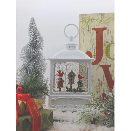 Christmas Cardinal Bird House Christmas Lighted Water Globe Lantern 8.75"H Musical Snow Globe with Swirling glitter Battery Operated & Timer