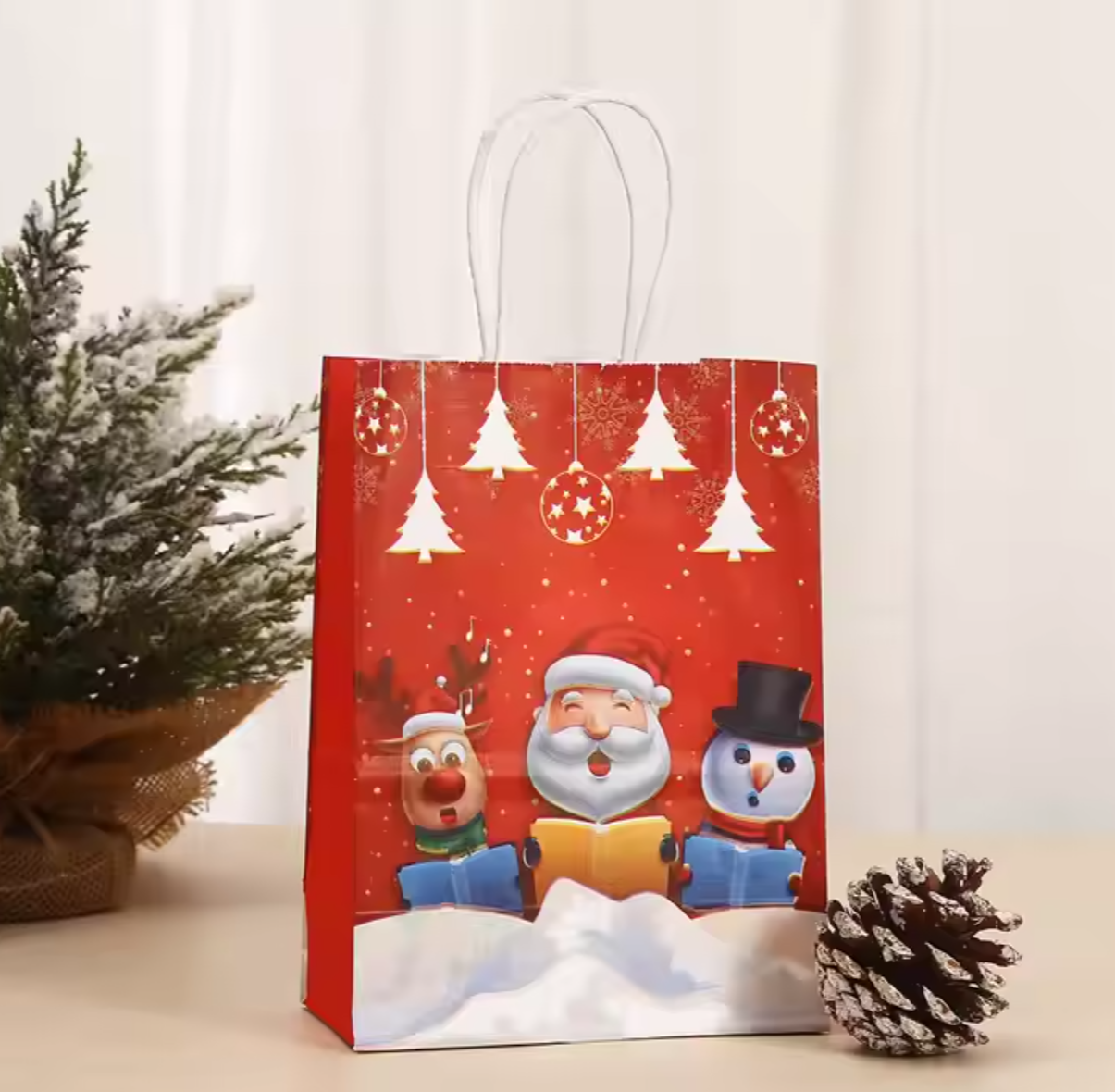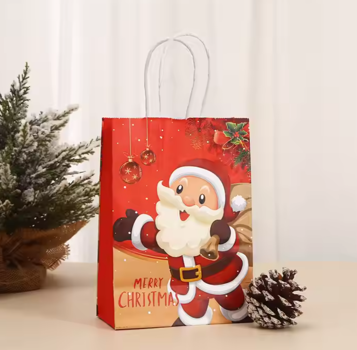 Christmas Cartoon Cute Santa Kraft Paper Tote Bag for Party Gift Shopping Cross Border Design Gravure Printing Logo for Crafts