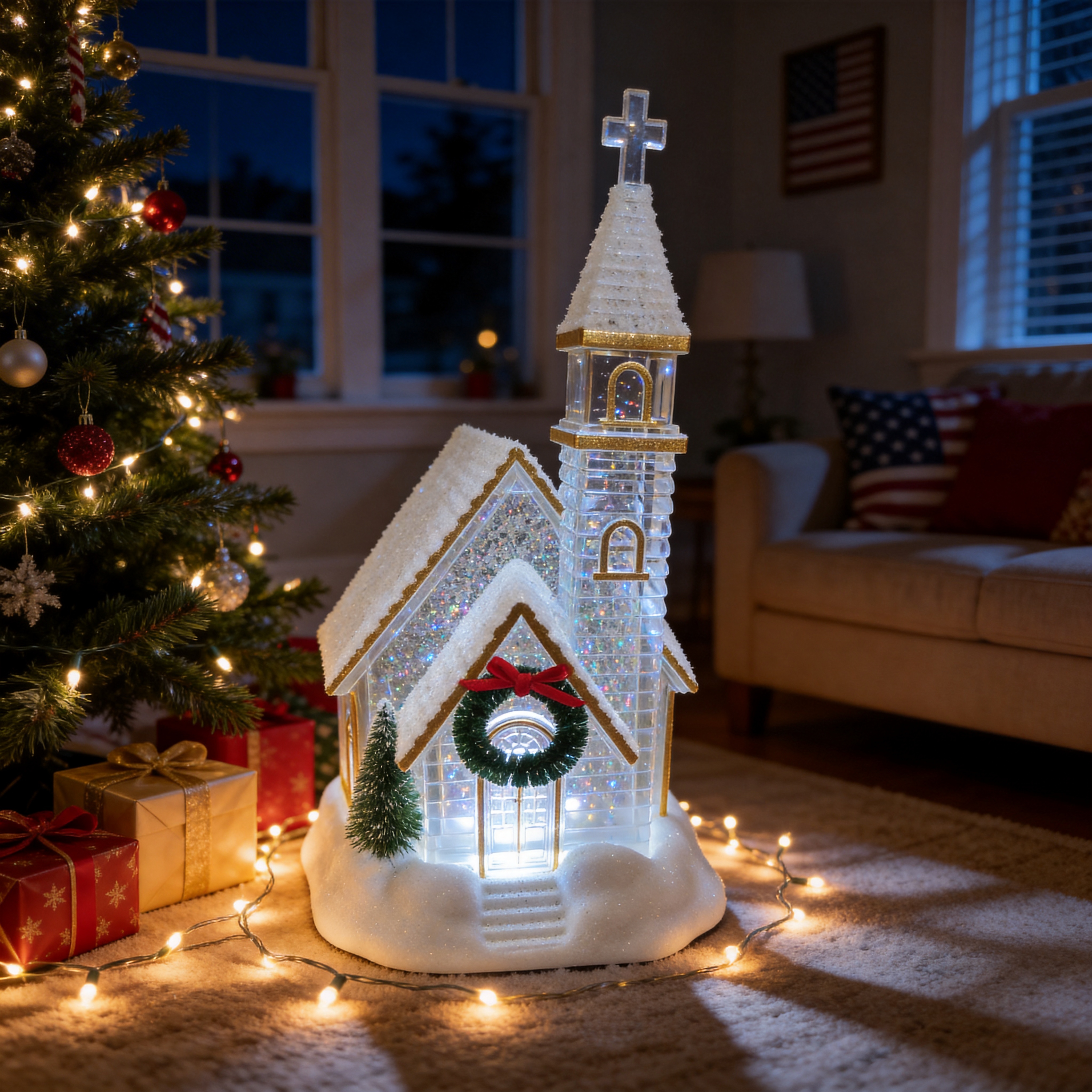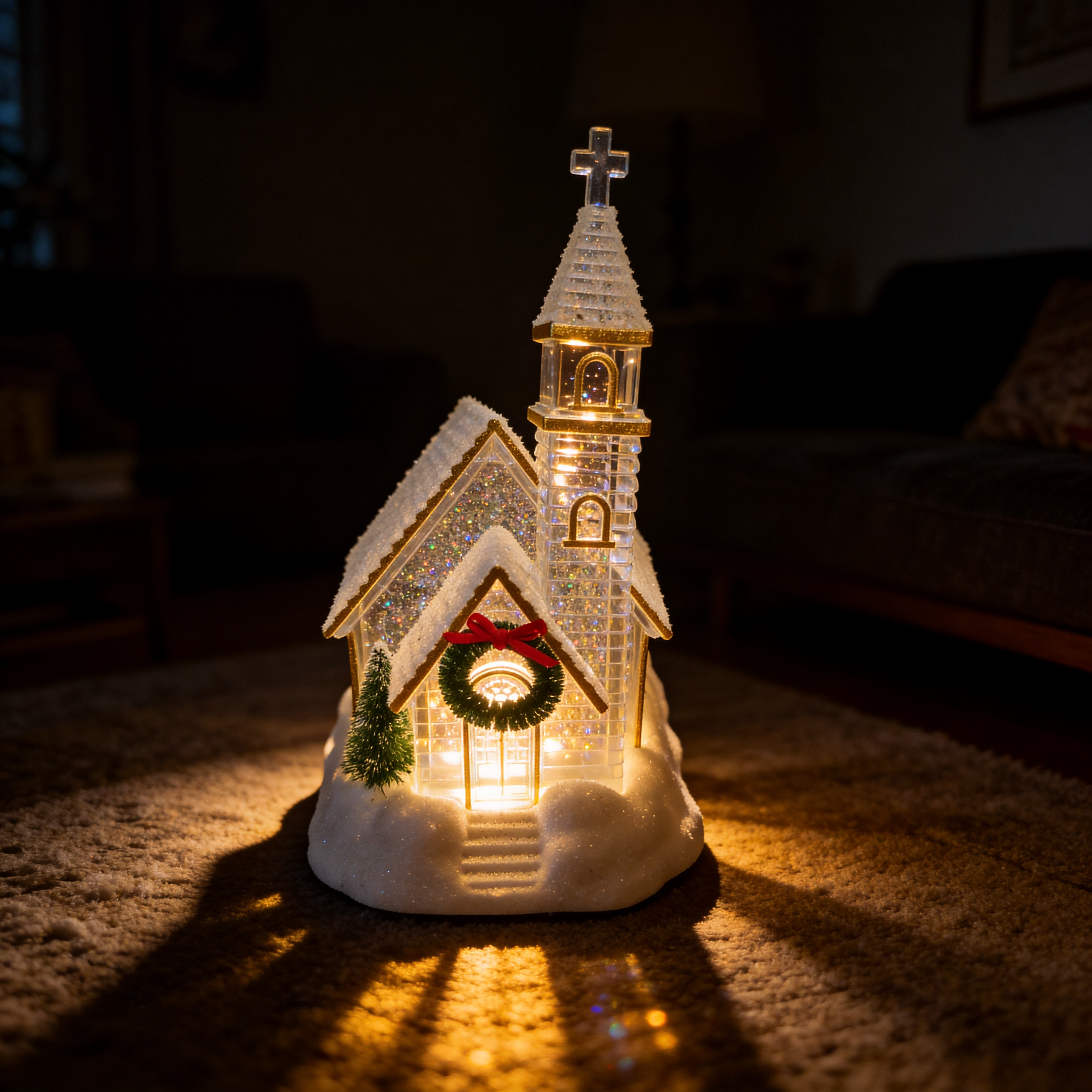 Warm LED Lighting – Soft glow from windows creates a cozy holiday atmosphere