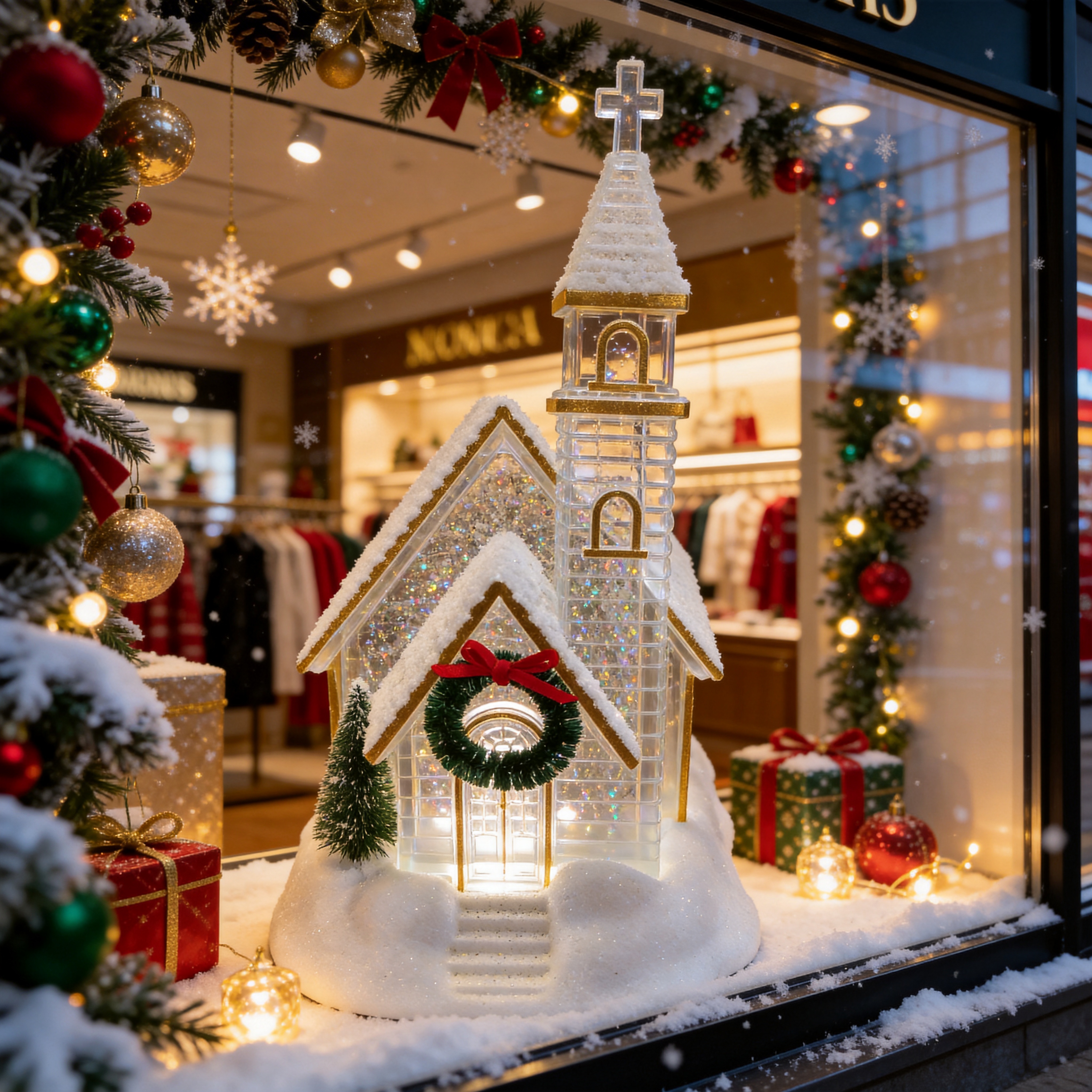 Classic Christmas Church Design – Detailed church with cross, wreath, and festive accents