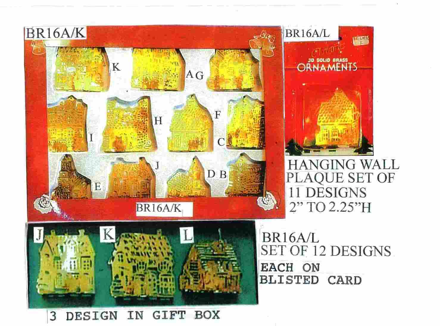 • BR16A/K, 3D diecut Solid Brass Ornaments for Christmas  Hanging Decoration, Size: from 2" to 2.25"  Set of 11 Designs.