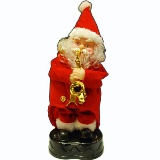 Featured is a Santa Claus decoration with a movable body. The lovely saxophone-holding Santa Claus is supported by a sturdy stand. When the power is turned on, it energetically dances and sways. It simply fills the house with lively Christmas feeling.
