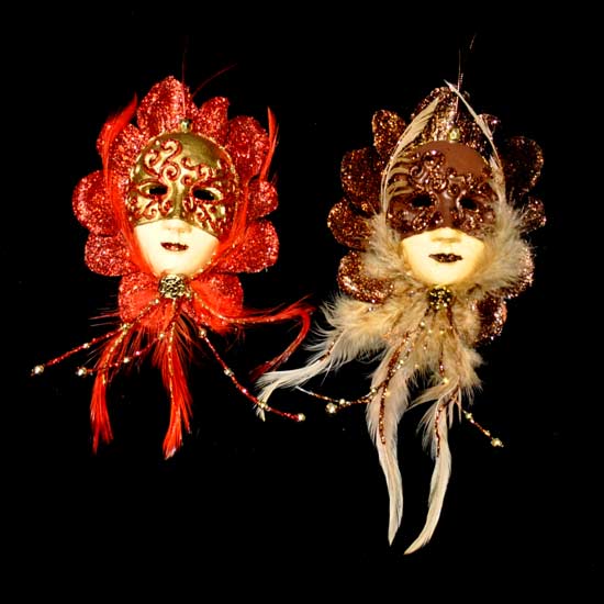 The Christmas decoration flaunts the appearance of a mask that is adorned with feathers in vivid colors. It showcases excellent handiwork and meticulous attention to details. With glitter and embossment, this fancy mask offers the perfect accent to magically turn your home into a party place.