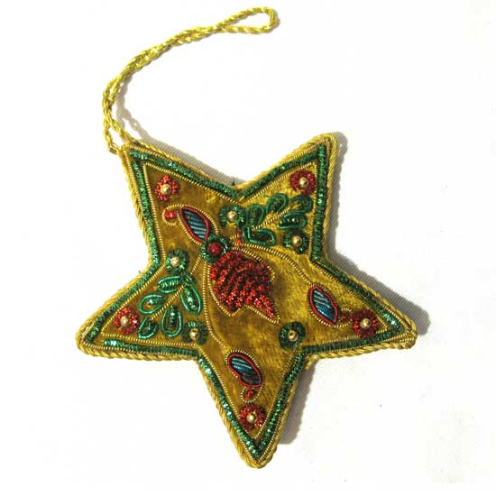Featured here is a star-shaped Christmas decoration that is well crafted by hands. Accented with tiny beads, this Christmas decoration showcases an exquisite touch. This Christmas decoration complements your Christmas tree nicely.