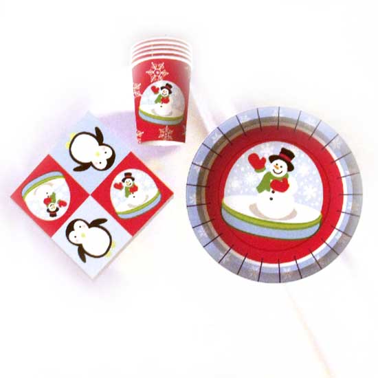 This tableware set features party napkins, cups and bowls. Designed in the theme of Christmas, this tableware set is perfect for Christmas events. With an adorable snowman print, this tableware set delights your guests instantly.