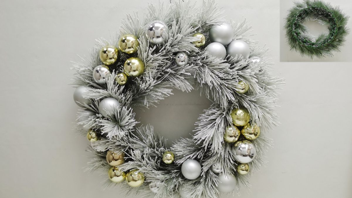 Gorgeous Winter Wreath Decoration for fireplaces, mantels, doors, walls, dining, front entryways, windows, and windowsills. Silver and Gold ornaments will add a pop of color for your Christmas and New Year.
