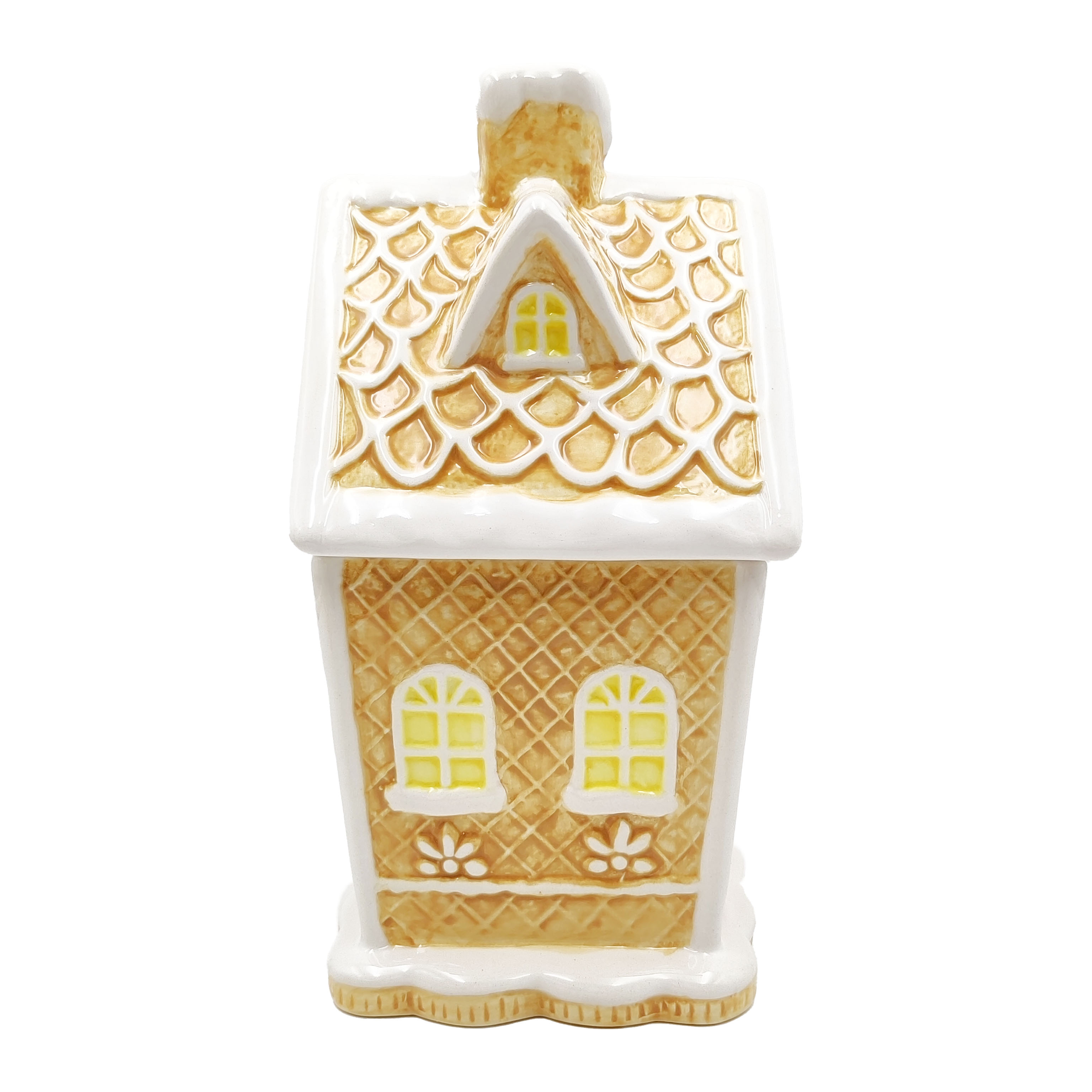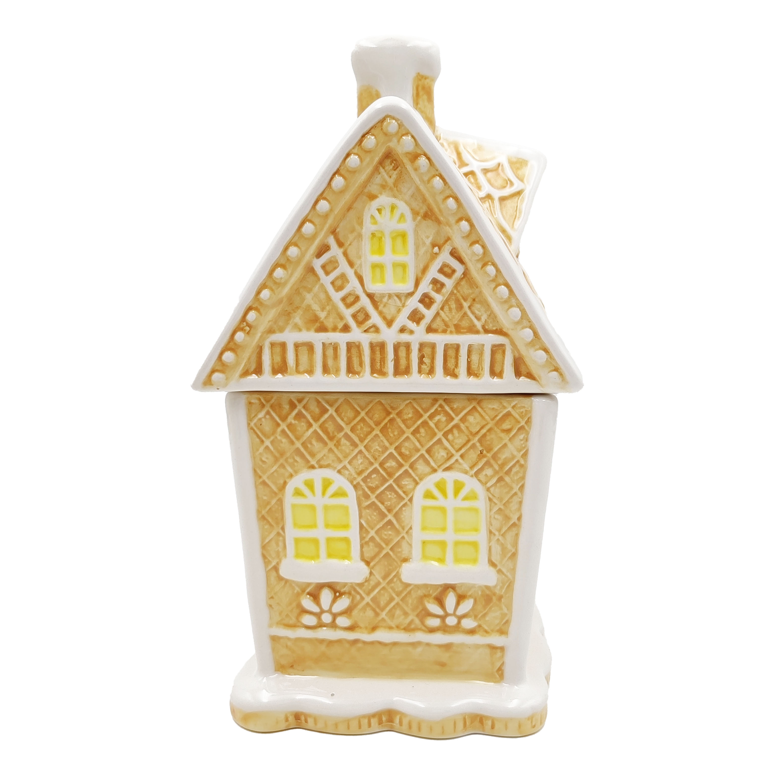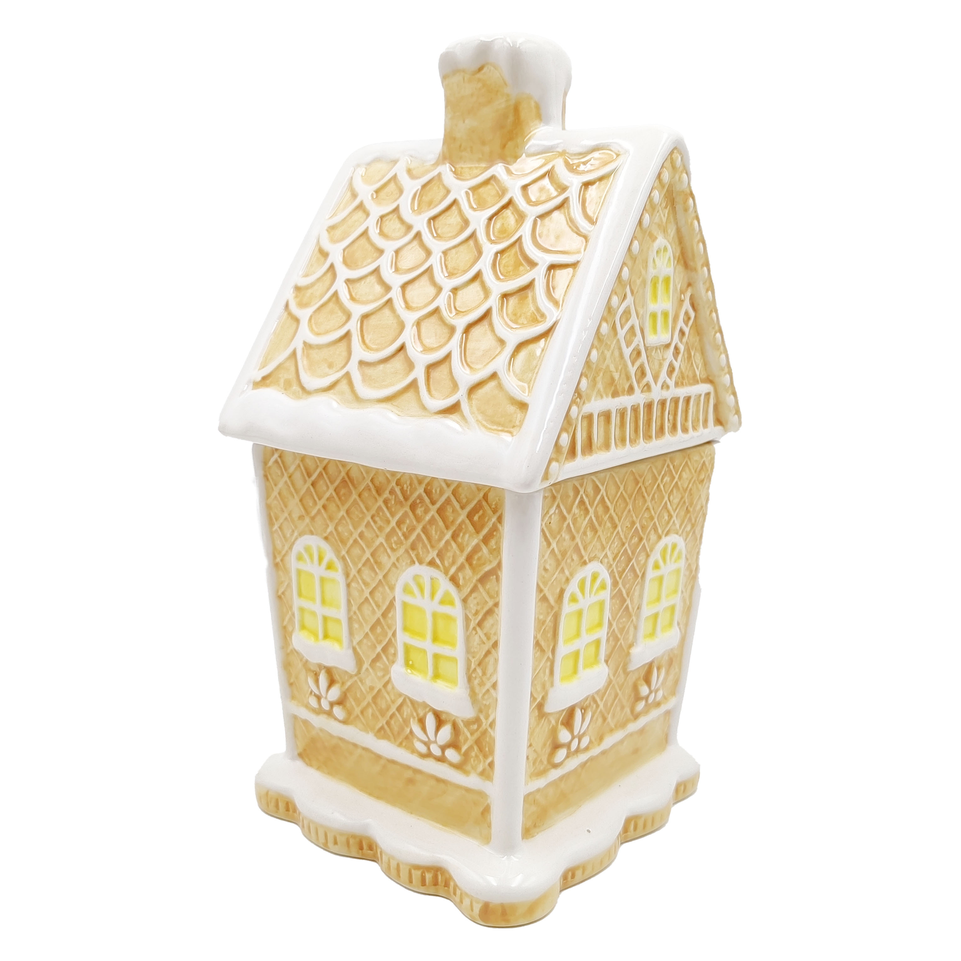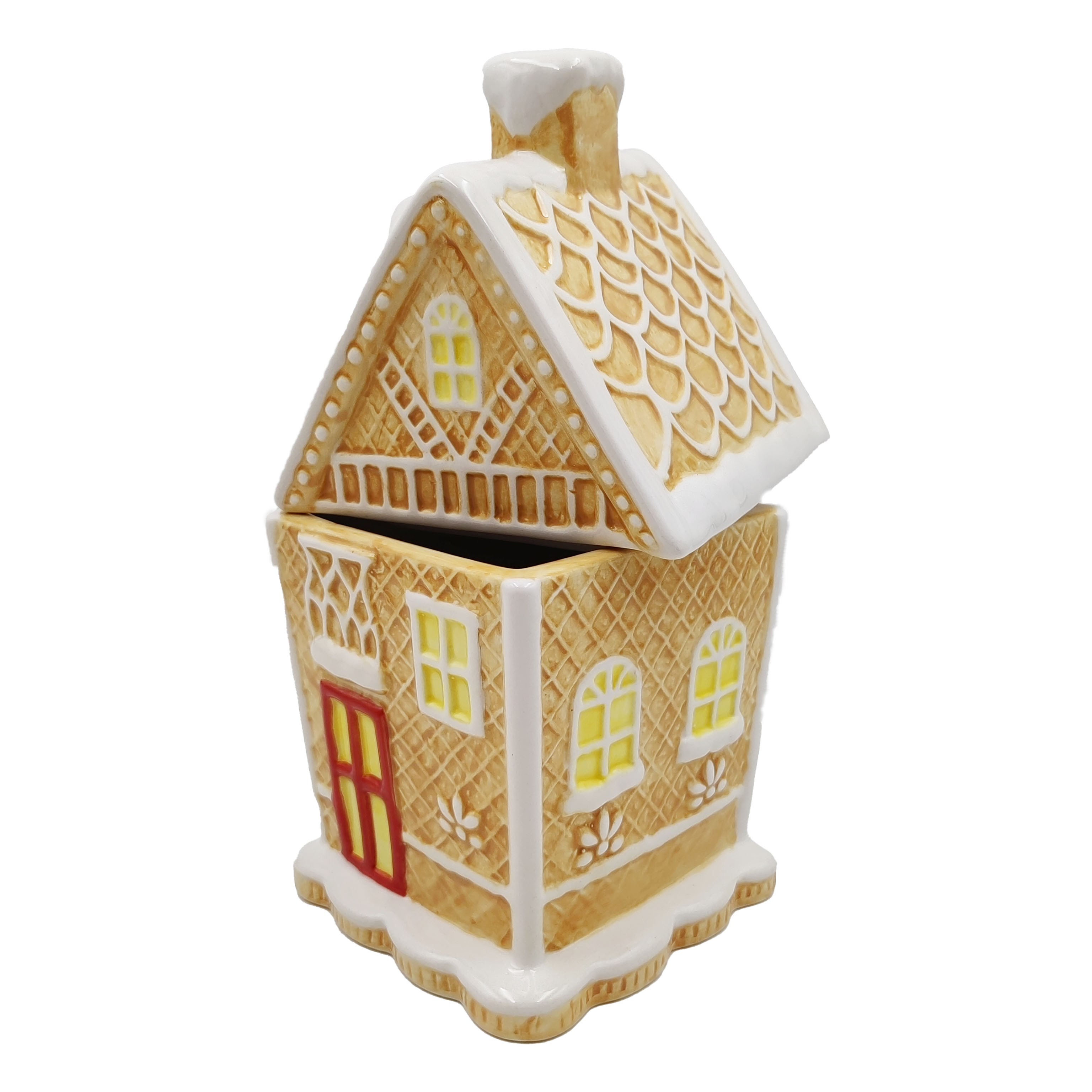 • Item Name: Christmas Gingerbread House Cookie Jar Ceramic Snow Holiday Kitchen Storage Container Decor