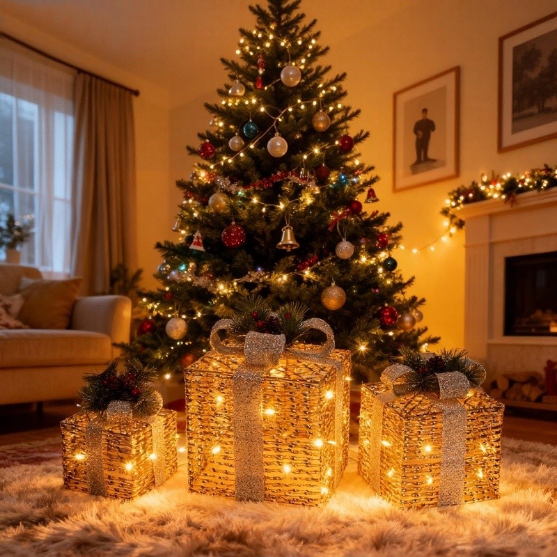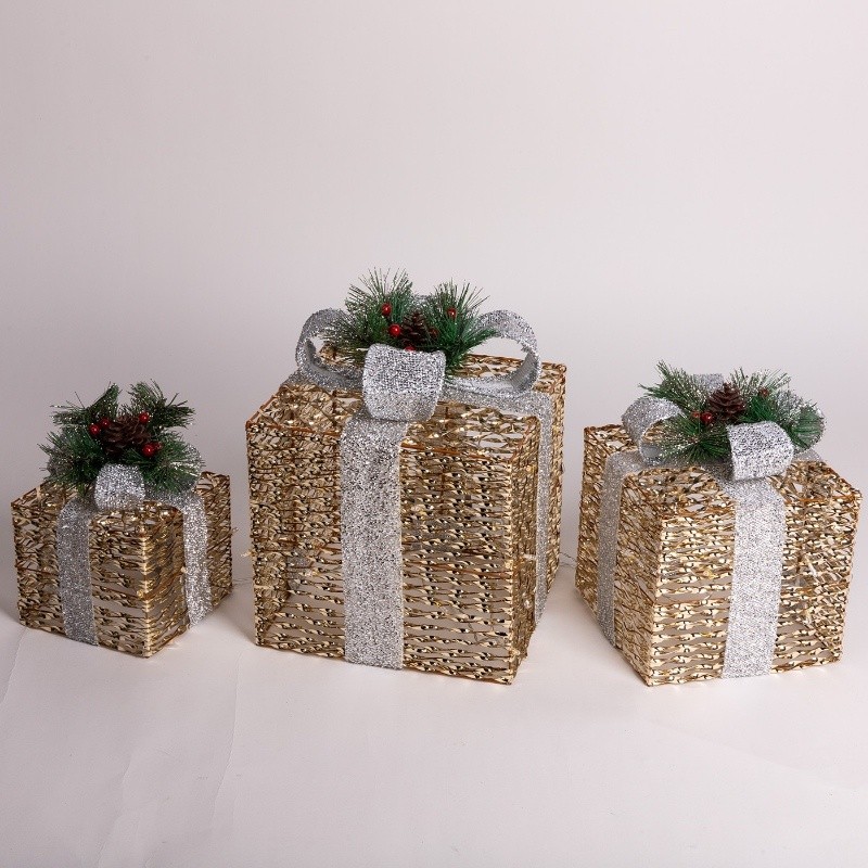 Set Of 3 Pre-lit Christmas Decoration Gift Boxes