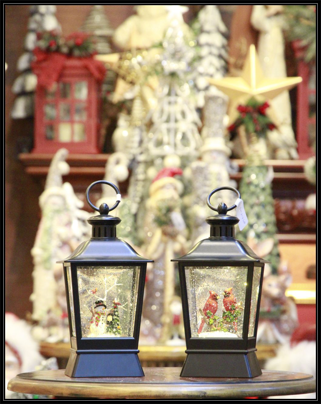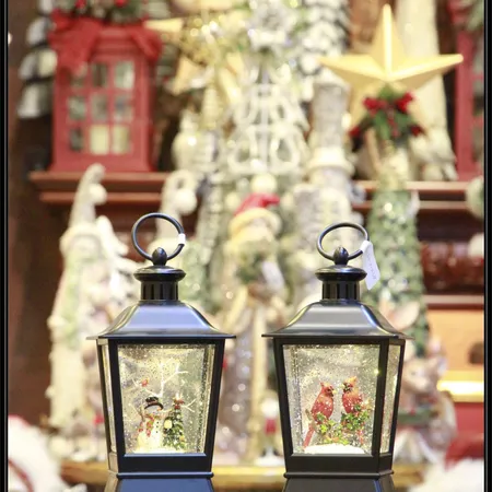 Christmas Lighted Water Globe Lantern 8.75"H Snow Globe w/Swirling Glitter Battery Operated