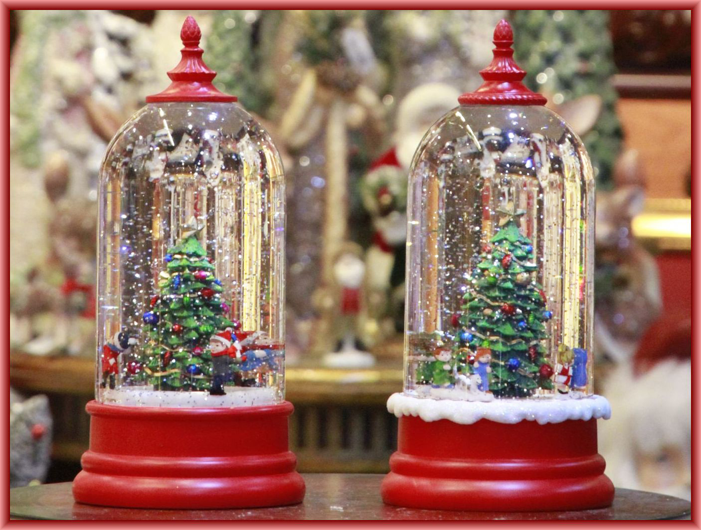 Christmas Lighted Water Globe Table Piece 10.5"H Snow Globe w/Swirling Glitter B/O
