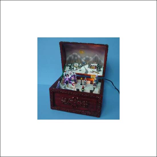 • The animated decorations inside the music box is lighted with fibre optic