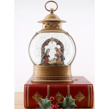Christmas Nativity Lighted Water Globe Lantern 10"H Musical Snow Globe with Swirling glitter Battery Operated & Timer