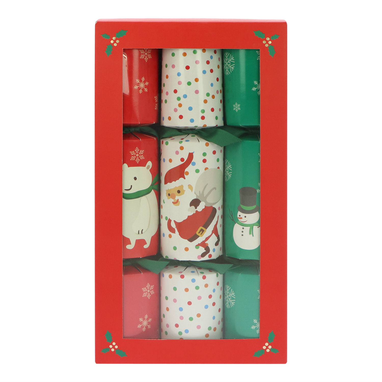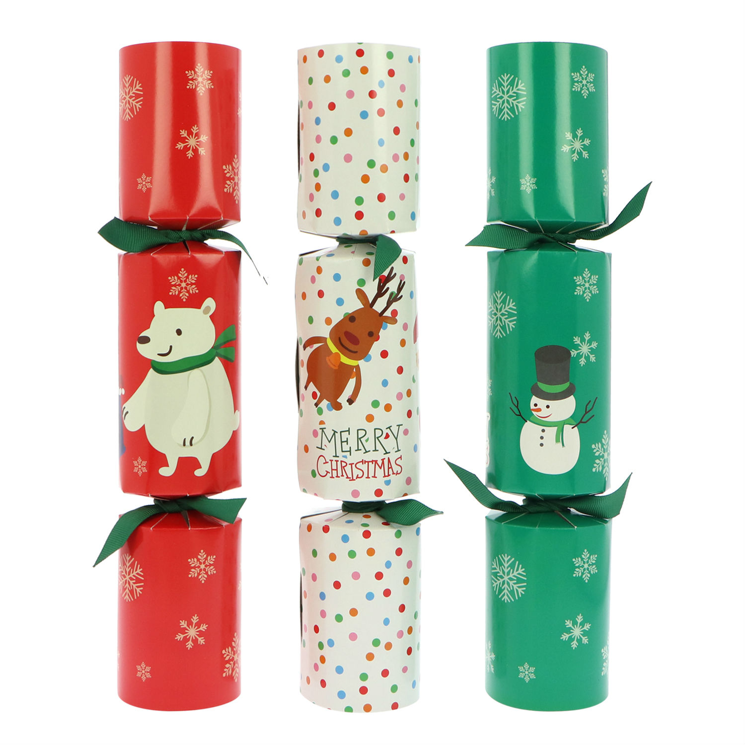 Highlighted here is a set of 9 paper crackers packaged in a foldable box with acetate window. The crackers come in three different Christmas themed designs can be used be make loud noises. They are fun and safe to play with and are excellent for Christmas celebration use.