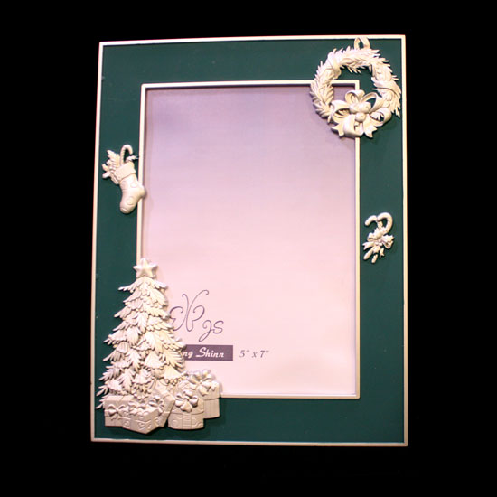 This rectangular photo frame features a thick border in solid pine green color. Decorated with a pair of silver rims and Christmas adornments, this frame makes a pleasant gift. This clean, sophisticated photo frame adds a festive touch to your home decor.