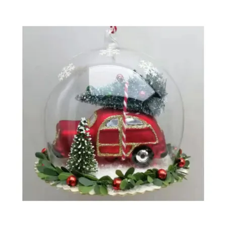 Christmas Red Car Glass Dome Ornament - Festive Holiday Decor