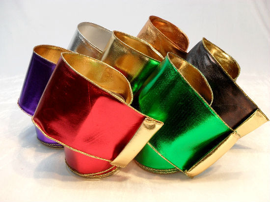 Christmas merrowed edged ribbons, a double-faced foiled fabric with gold lame glued. The lame can be changed to silver fabric as well.