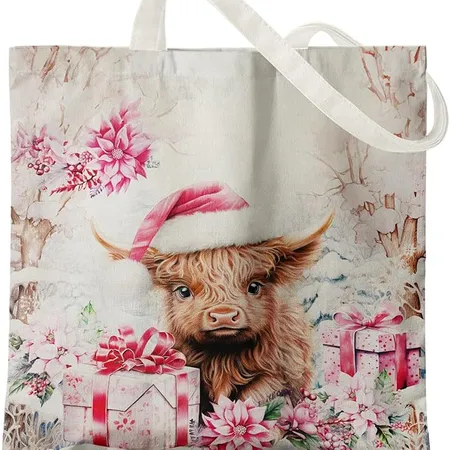 Christmas Santa hat Highland Cow Canvas Tote Bag