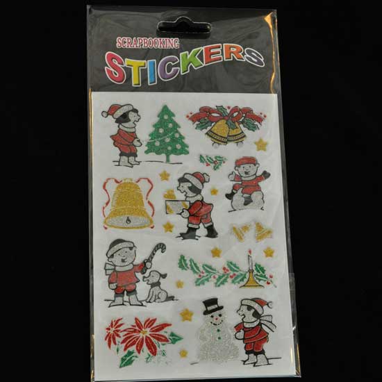 The Christmas sticker set features well-drawn cartoon Christmas objects and characters like Christmas trees, Santa-dressed kids and snowmen. The glitter stickers are nice Christmas decorations.