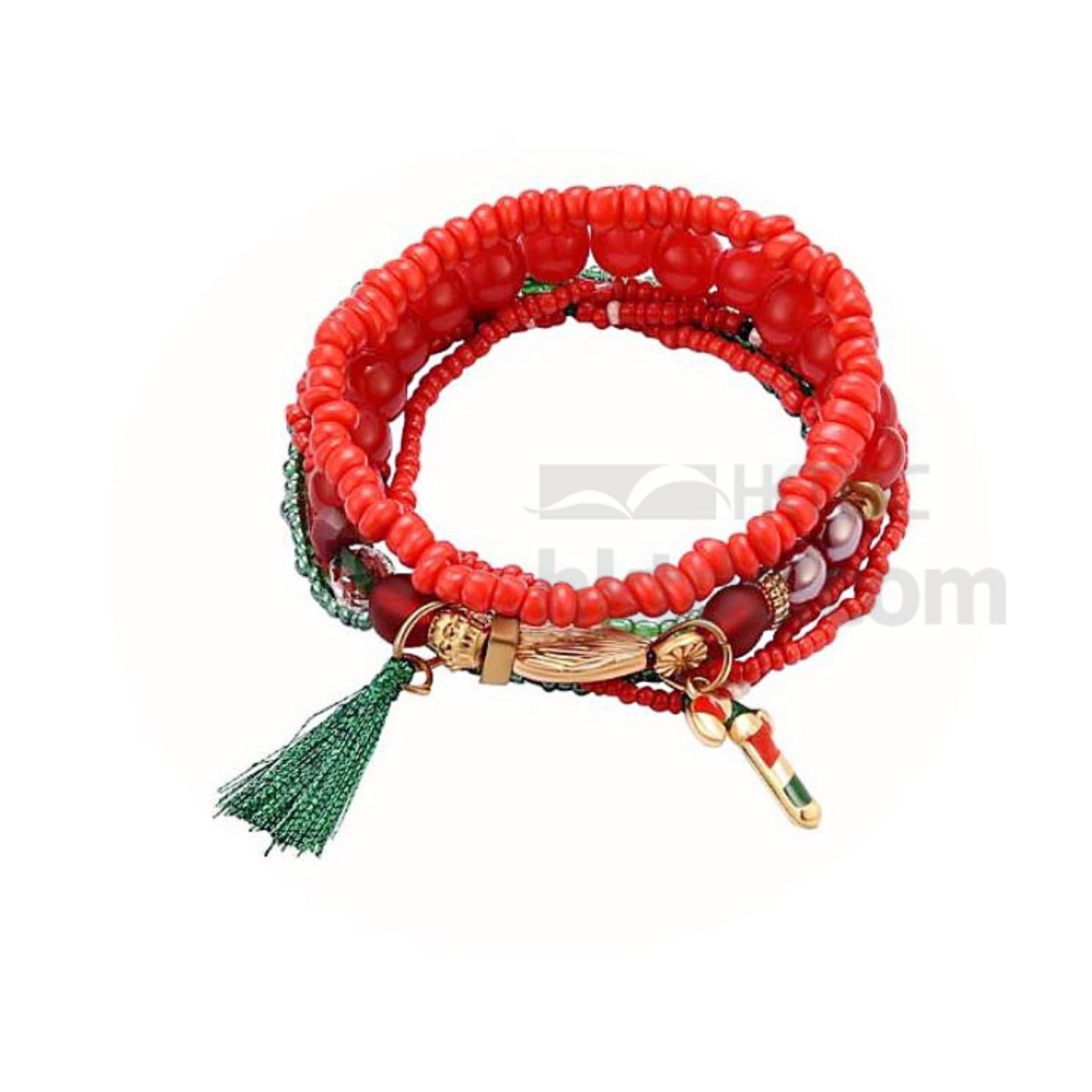 This is set of delicate bracelet highlighted by the enamel-painted candy stick and beads to match the festive season.