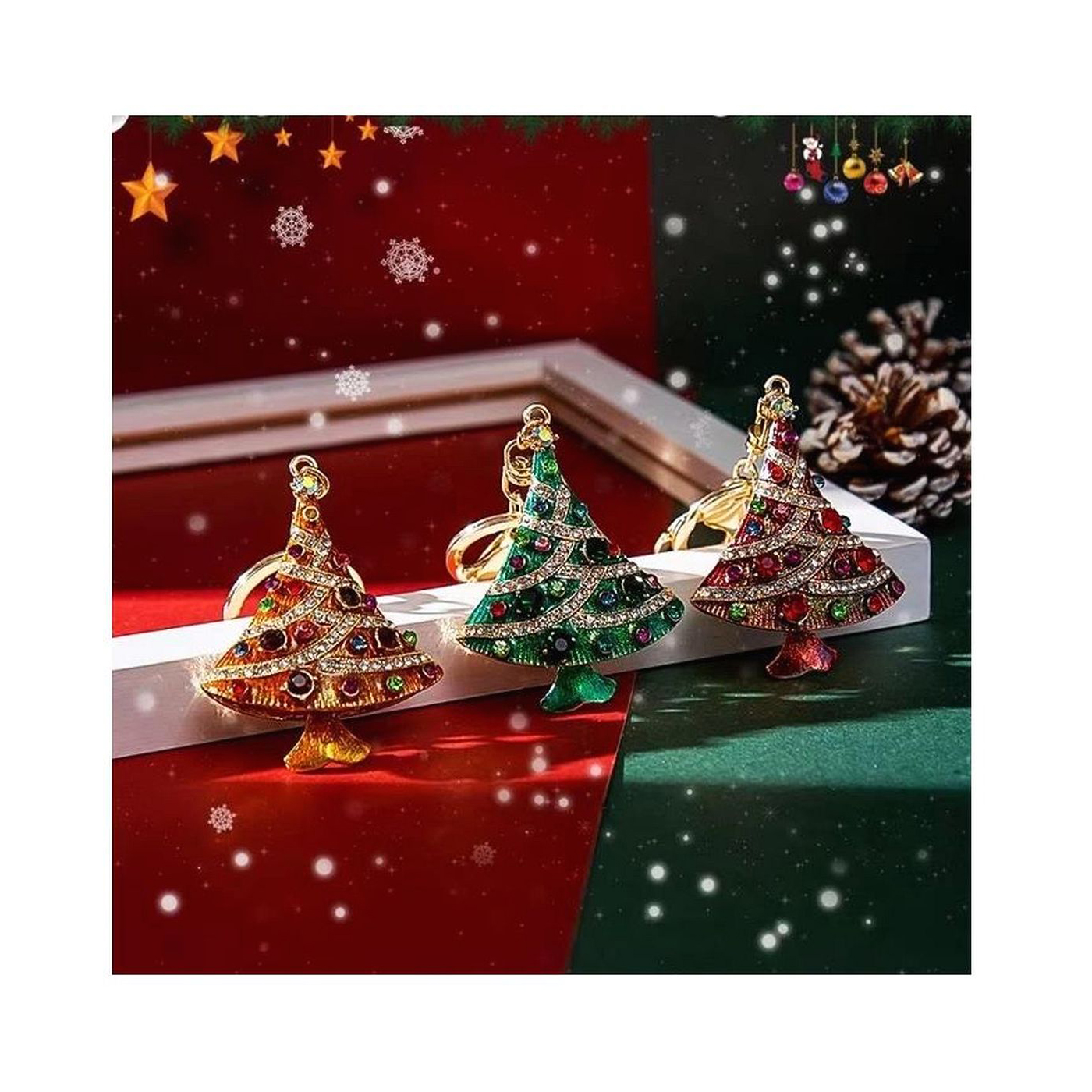 This is a piece of delicate golden plated key chain highlighted by the Christmas tree to match the festive season.