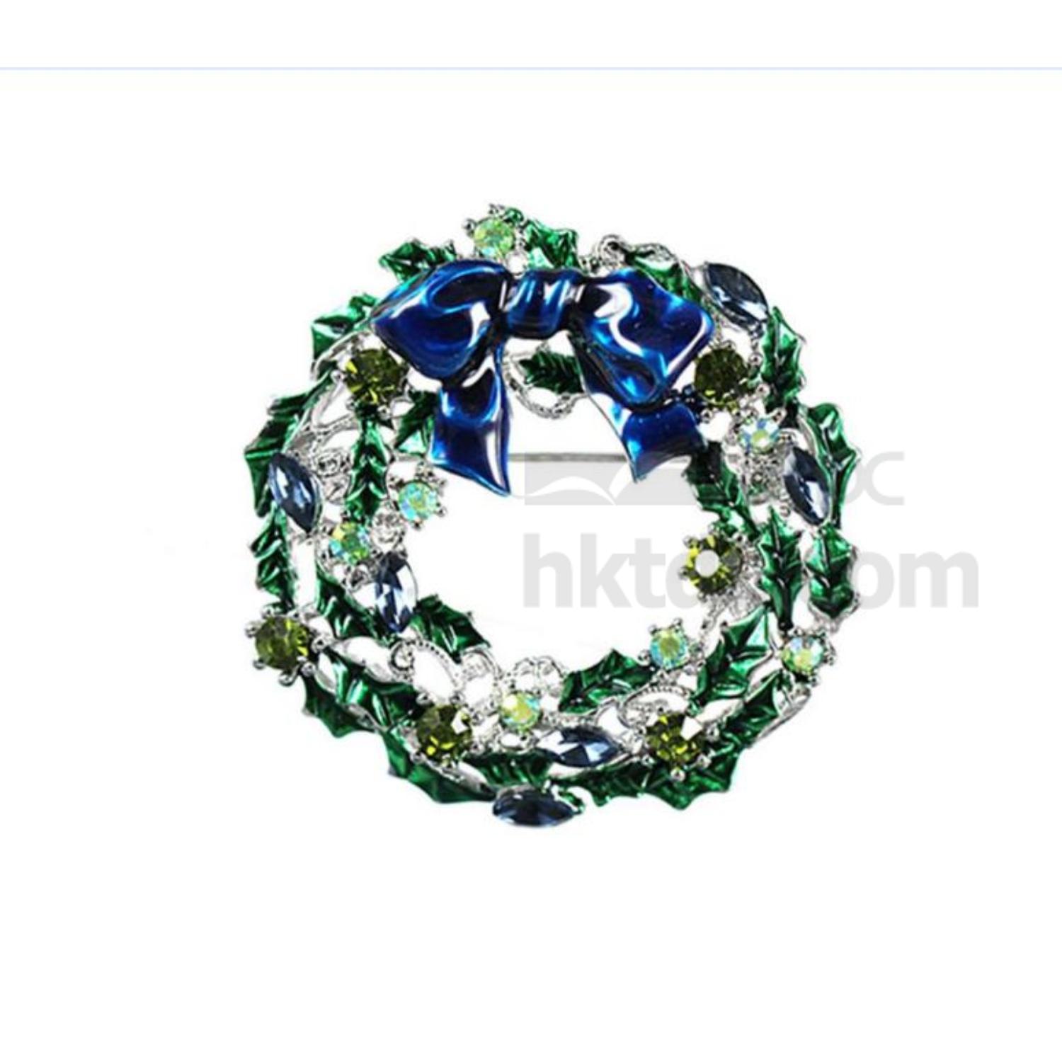 • This is a piece of delicate silver plated brooch highlighted by the crystals green Christmas wreath to match the festive season.