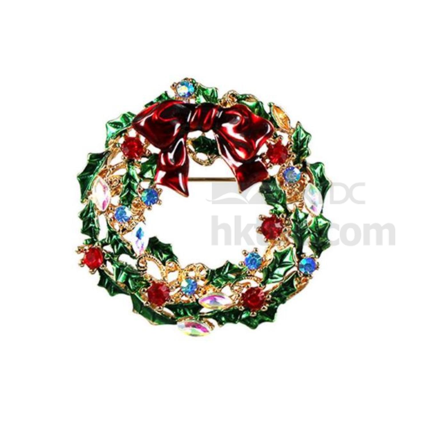 This is a piece of delicate brooch highlighted by the enamel-painted crystals wreath to match the festive season.