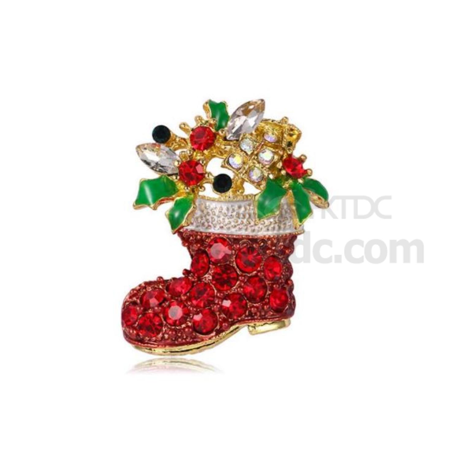 Christmas Theme Gold Plated Christmas Sock Brooch