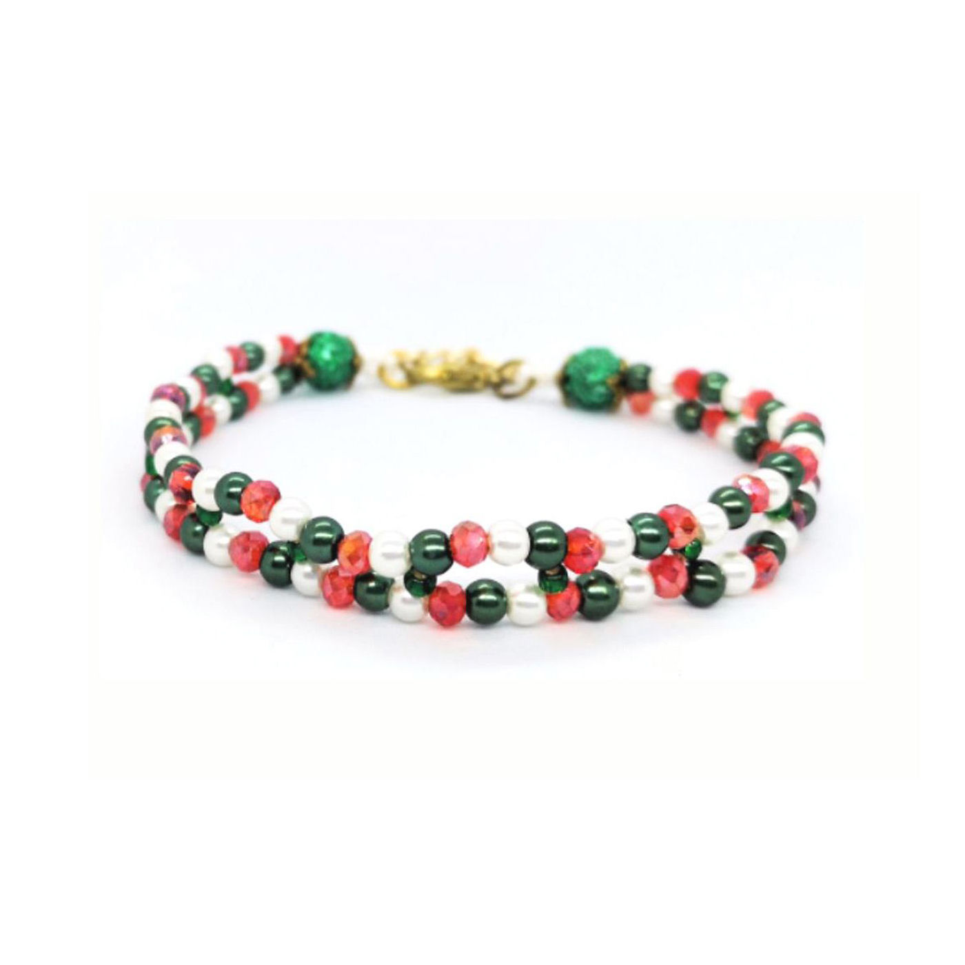 This is a piece of delicate bracelet highlighted by plastic beads to match the festive season.