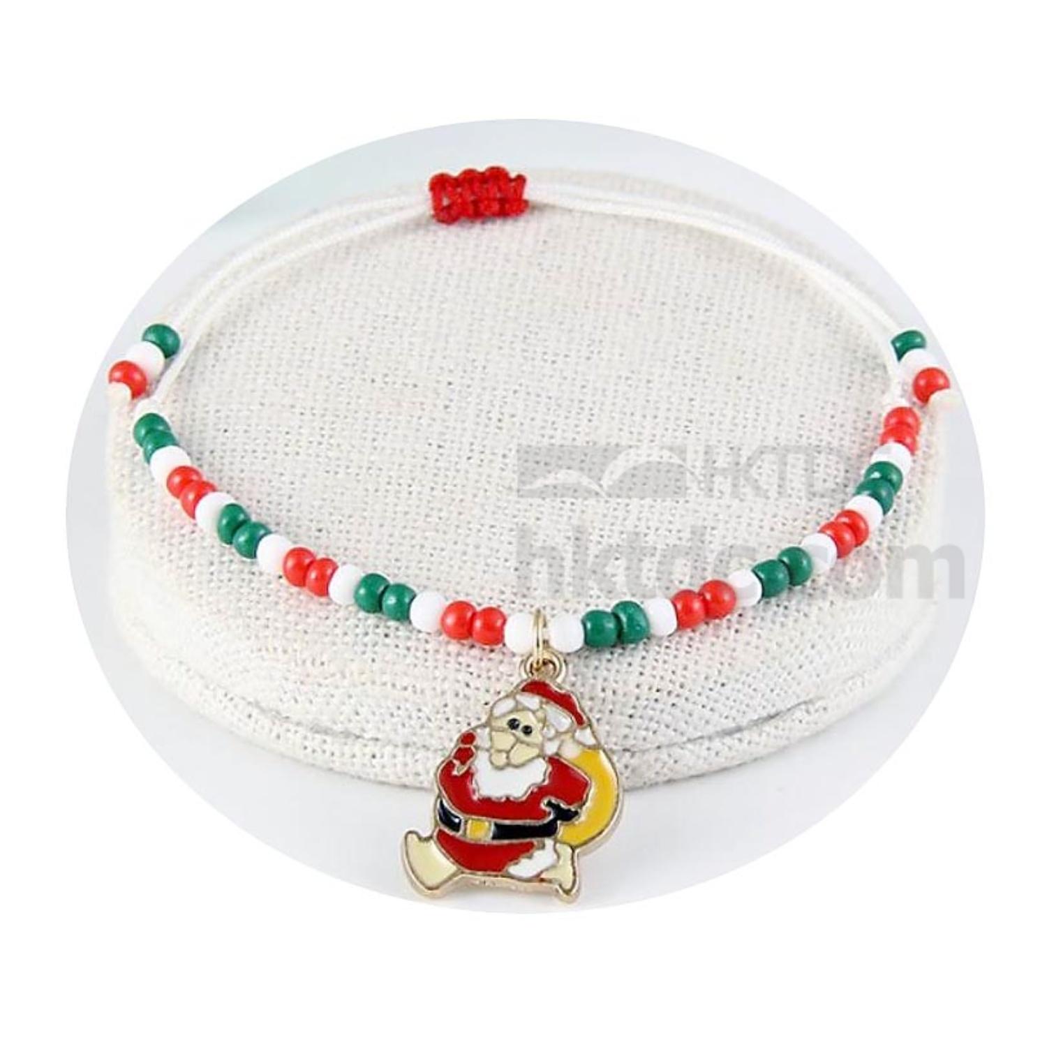This is pair of delicate bracelet highlighted by the enamel-painted Santa Claus and beads to match the festive season.
