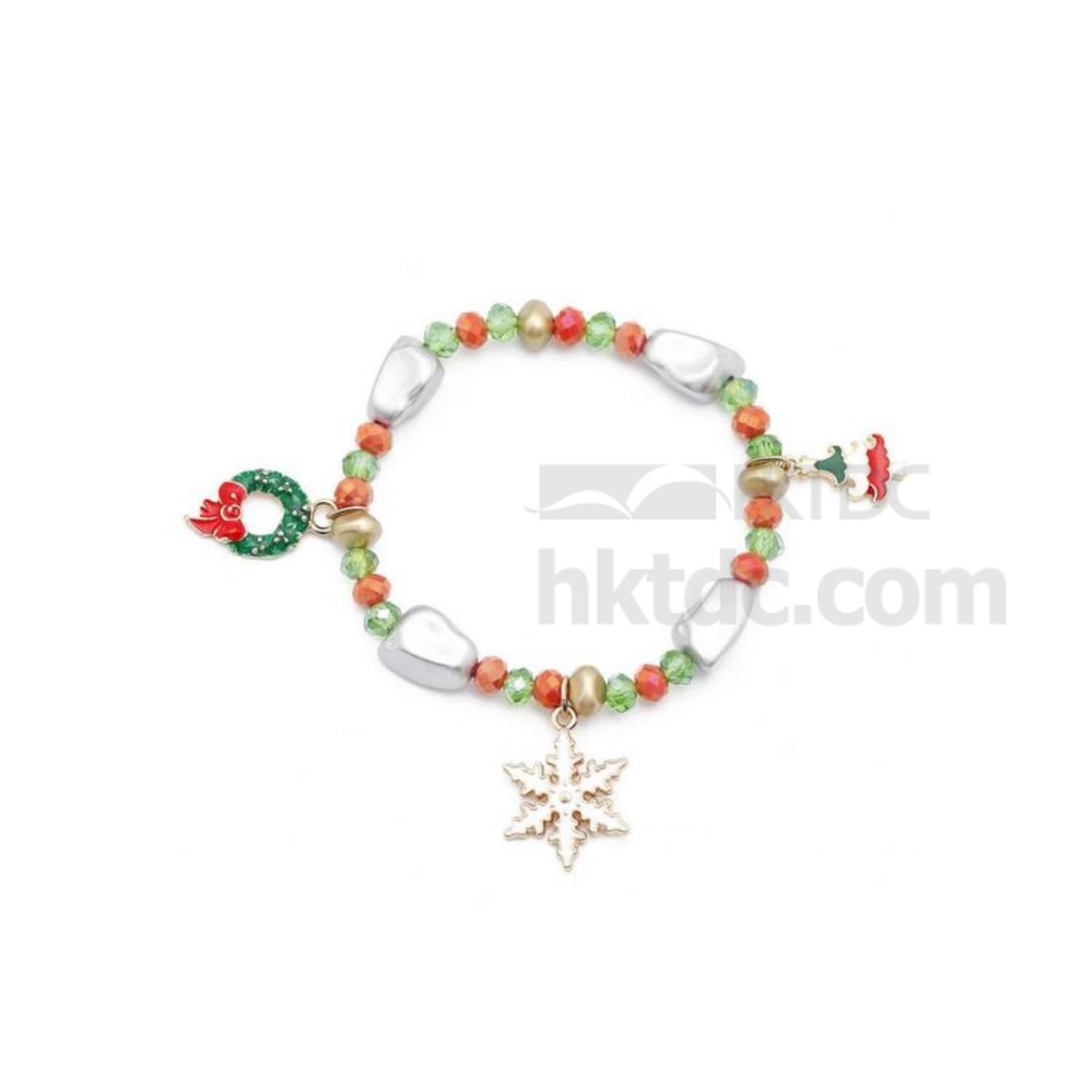 This is a piece of delicate bracelet highlighted by the enamel-painted show and tree drops to match the festive season.