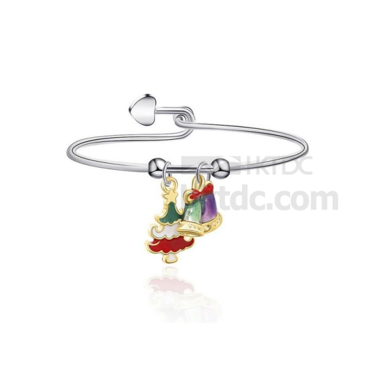This is a piece of delicate bangle highlighted by the enamel-painted tree and bell drops to match the festive season.