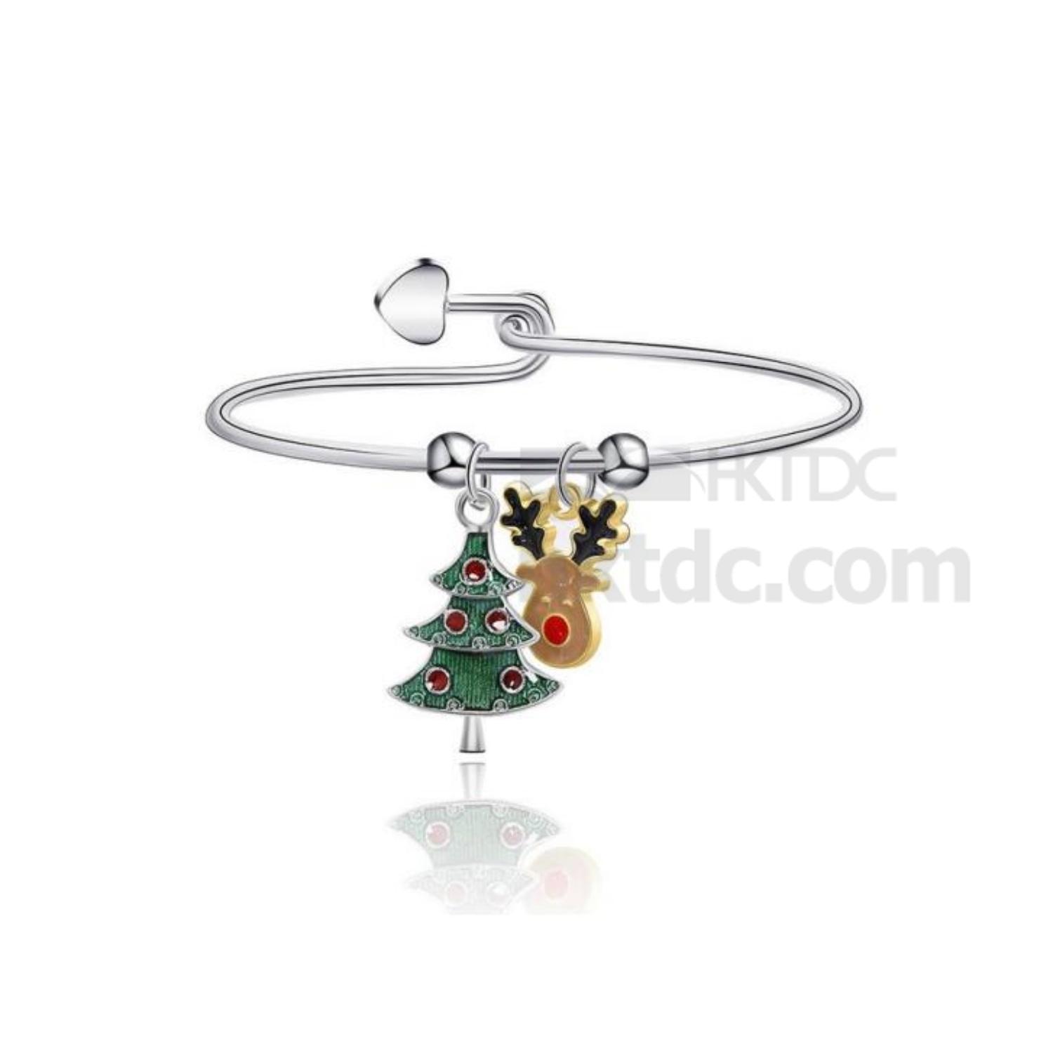This is a piece of delicate bangle highlighted by the enamel-painted tree and deer drops to match the festive season.