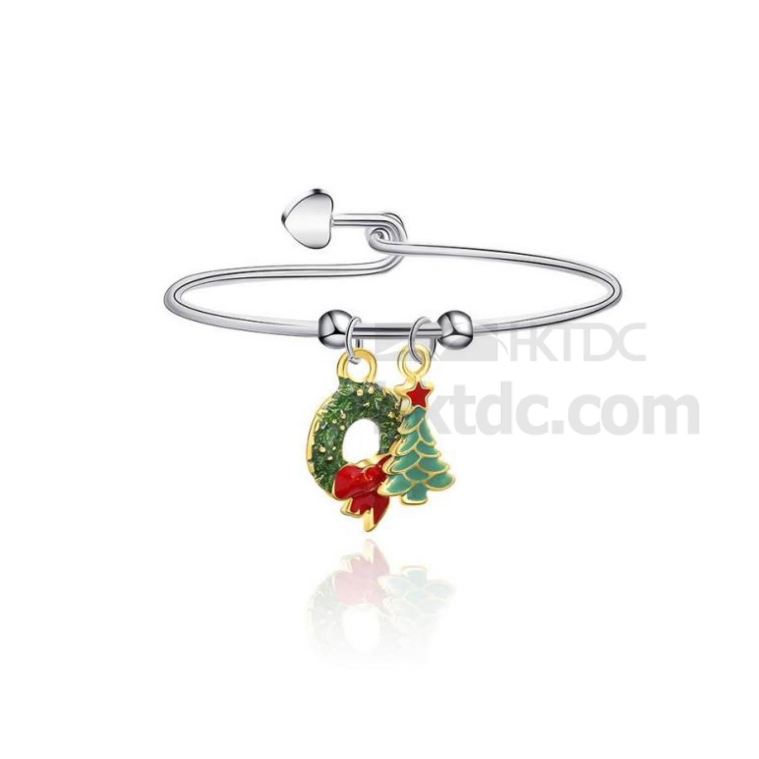 This is a piece of delicate bangle highlighted by the enamel-painted wreath and tree drops to match the festive season.