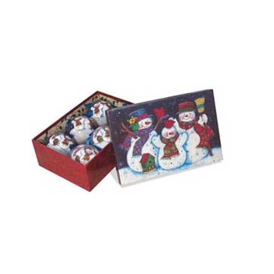 Showcased is a beautiful set of ornaments to brighten your Christmas trees. The Christmas balls in this set all feature adorable snowman pictures. All balls are packed in a rectangular color-printed box to make a pleasing gift.