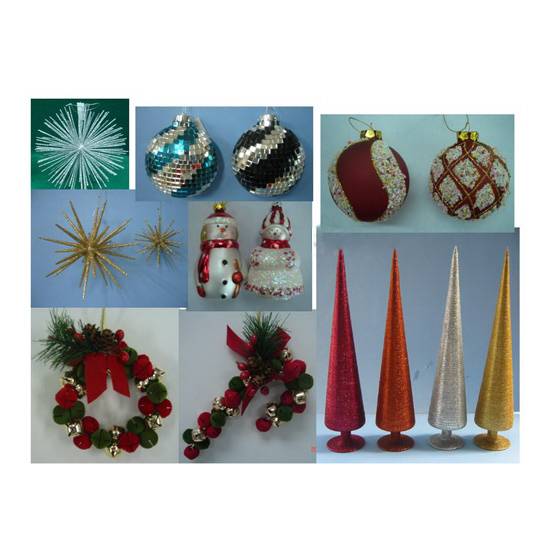 These are Christmas tree's decoration that are sleek in common. They are made of different materials like glass, plastic and fabrics. The strings are made of plastic wires, which are firm and less easy to be broken. These ornaments can be re-used and matched to new-brought decorations well.