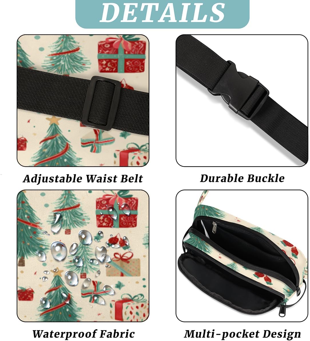 Christmas Tree Elements Pattern Waist Packs for Women Men