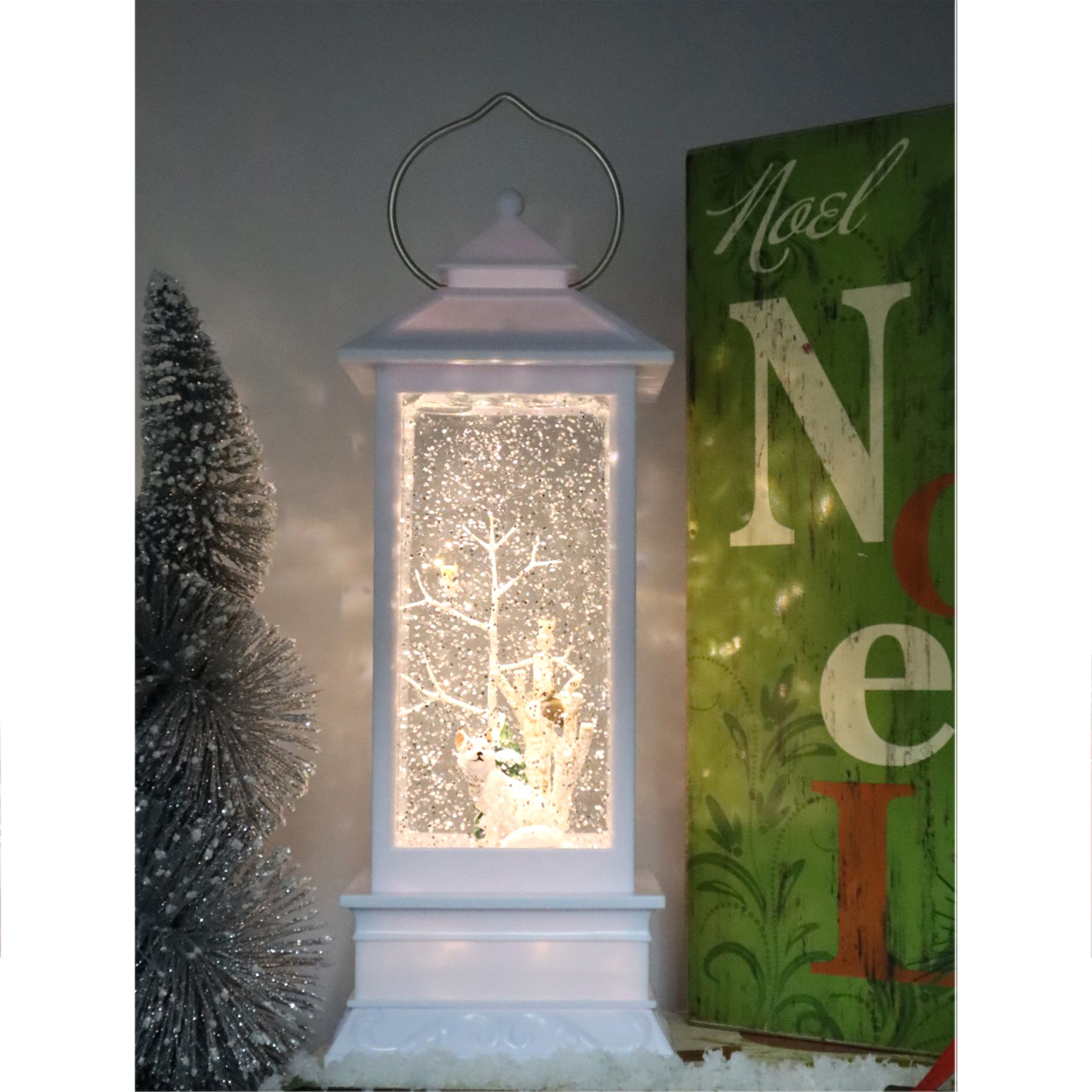 Christmas Winter Animals Lighted Water Globe Lantern 11"H Musical Snow Globe with Swirling glitter Battery Operated & Timer