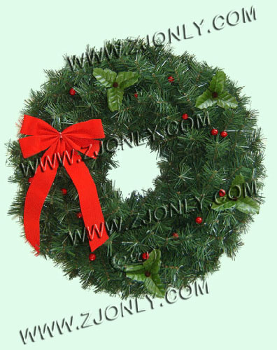 This is a Christmas wreath with dense lush greenery. It is nicely interspersed with a red ribbon and holly berries for added vogue. This pretty Christmas wreath makes a great item to decorate your dorm room, children's room, small apartment...etc.
