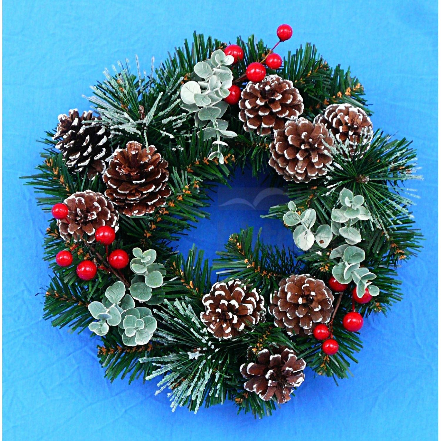 • 30cm Christmas wreath with white pine cones and berries decorations.