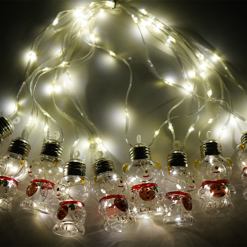 - 10pcs of transparent plastic bulb painted Christmas snowmen with E26 screw cap
