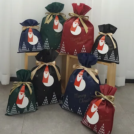 Every Christmas Eve, Santa uses this bag to pack everyone's gifts, and then delivers them door to door.By choosing this gift bag, you can also become a very popular Santa Claus.This non-woven bag comes in two sizes, large and medium. It is suitable for packing any size gifts, such as toys, stationery , sweets and so on. This navy color drawstring gift bag has the words Merry Christmas and a white pure Christmas tree on it. What I like most is the very cute Santa-like label. Please select this plastic gift bag when you are worried about how to wrap gift.