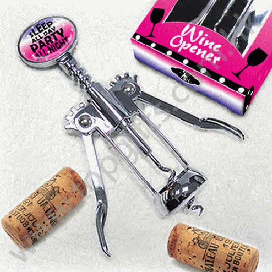 This is a chrome-plated wine bottle opener coming with a chic and sleek look. It features a pinkish round sign on the top with words of “sleep all day, party all night” for a cool touch. This fashionable corkscrew saves you so much energy for opening a wine bottle.