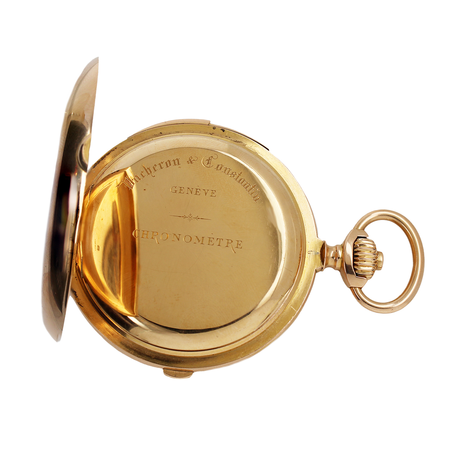 Up for sale is a Vacheron & Constantin 18k Pink Gold Minute Repeating Chronograph Hunting Case Pocket Watch c. 1902.