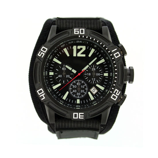This watch comes with a classical Japan chronograph movement. The robust case is durable and offers water-resistant performance. This wrist watch has a sturdy top-quality synthetic strap.