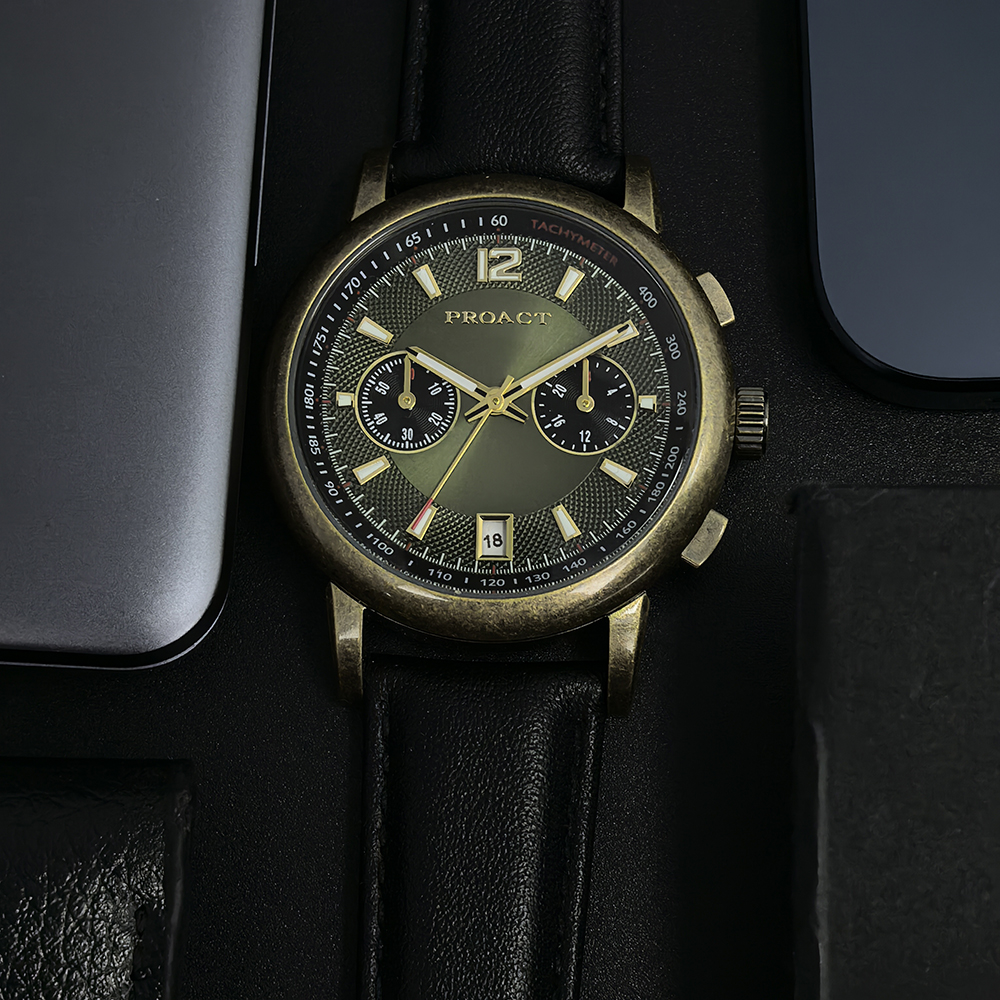 Genuine leather strap,Water-resistant up to 5 ATM.