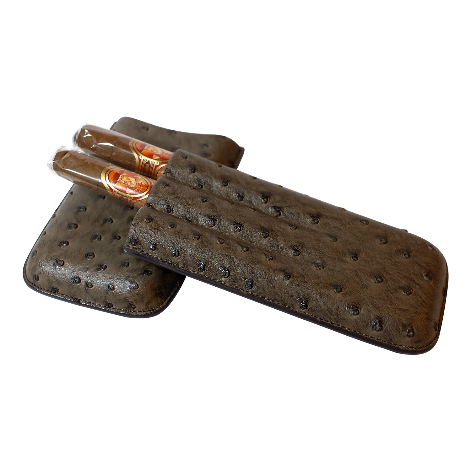 This cigar case features a rectangular silhouette in two separate pieces. It offers enough space to accommodate up to three cigars. This three-finger cigar case is finely made of genuine leather to withstand the stresses of frequent use.