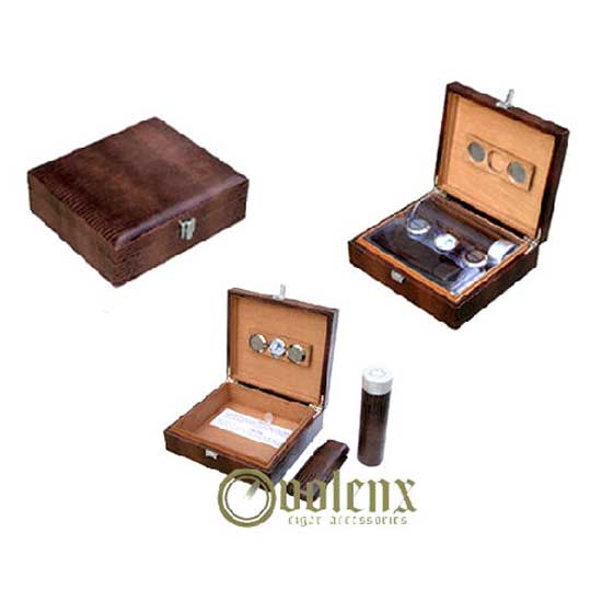 This exclusive cigar gift set features a cigar case with an aluminum tube, a hygrometer and two humidifiers. The functional cigar case can store up to 20ct cigar. It keeps the cigar dry and well-preserved at the perfect humidity.