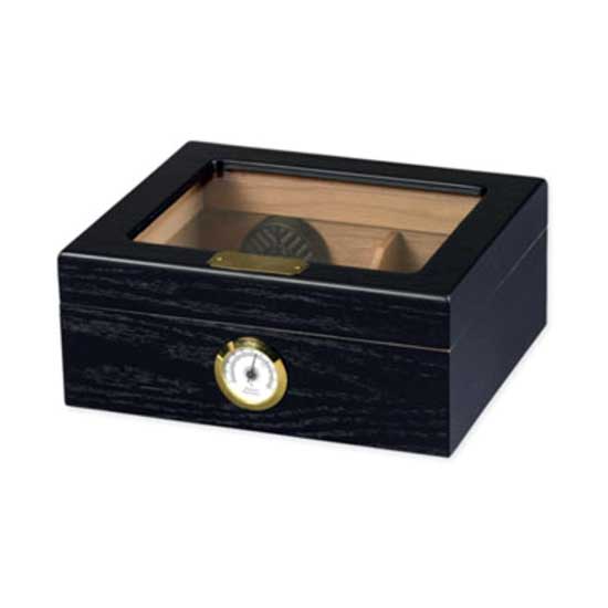 This cigar humidor in black comes in a compact size for easy storage. It is fitted with a transparent window on the top for easy viewing the contents inside. This sophisticated cigar humidor is a great gift choice.