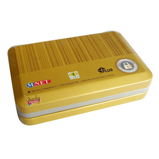 This cigar packaging box is constructed of 0.23mm tinplate. It comes in a rectangular shape with a generous capacity. This piece features a colored finish for surface protection and enhanced appeal.